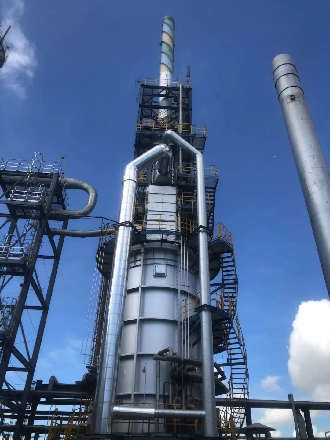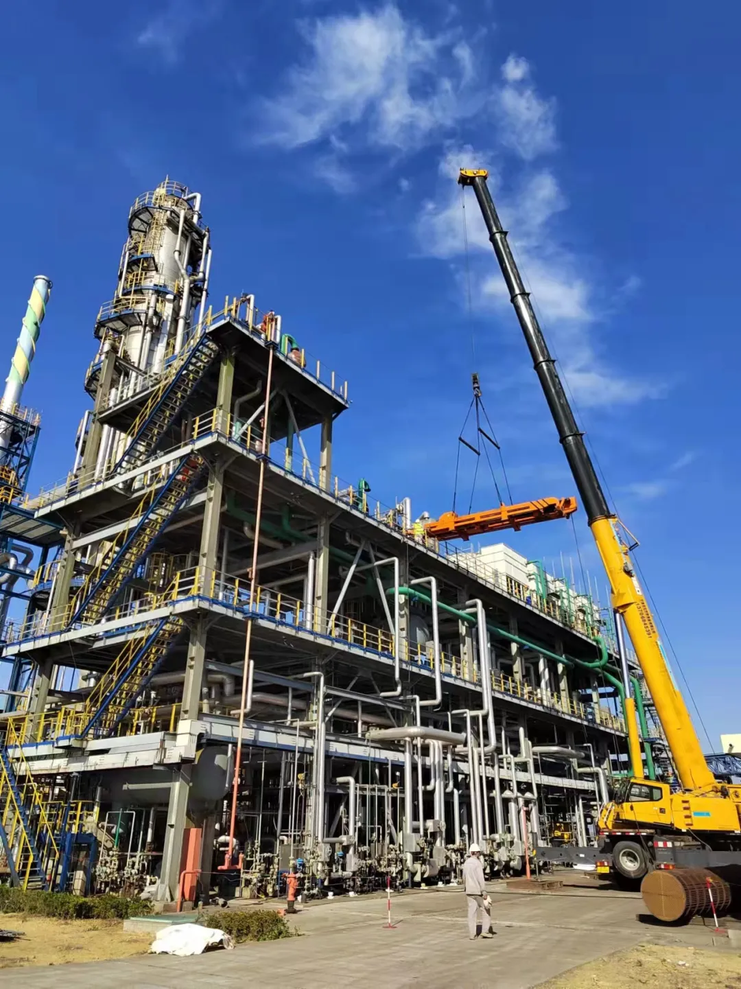 装置因多年停运,许多设备陈旧老化,均需要翻新更换。每一个扶梯,每一根管线,每一个阀门...经过不懈努力,终于焕然一新!