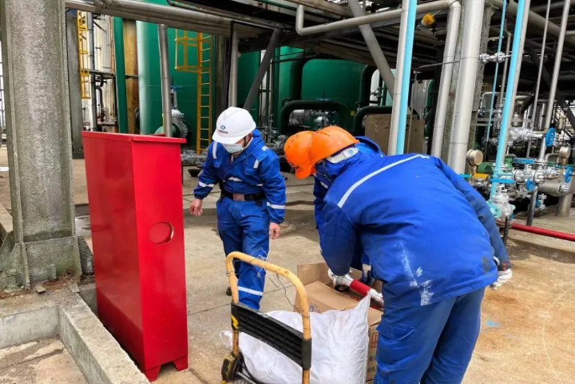 2021年12月26日,随着压力管线上最后一块盲板拆除,标志着宁波海靖环保科技有限公司装置大修工作圆满收官,装置正式具备投运生产条件。