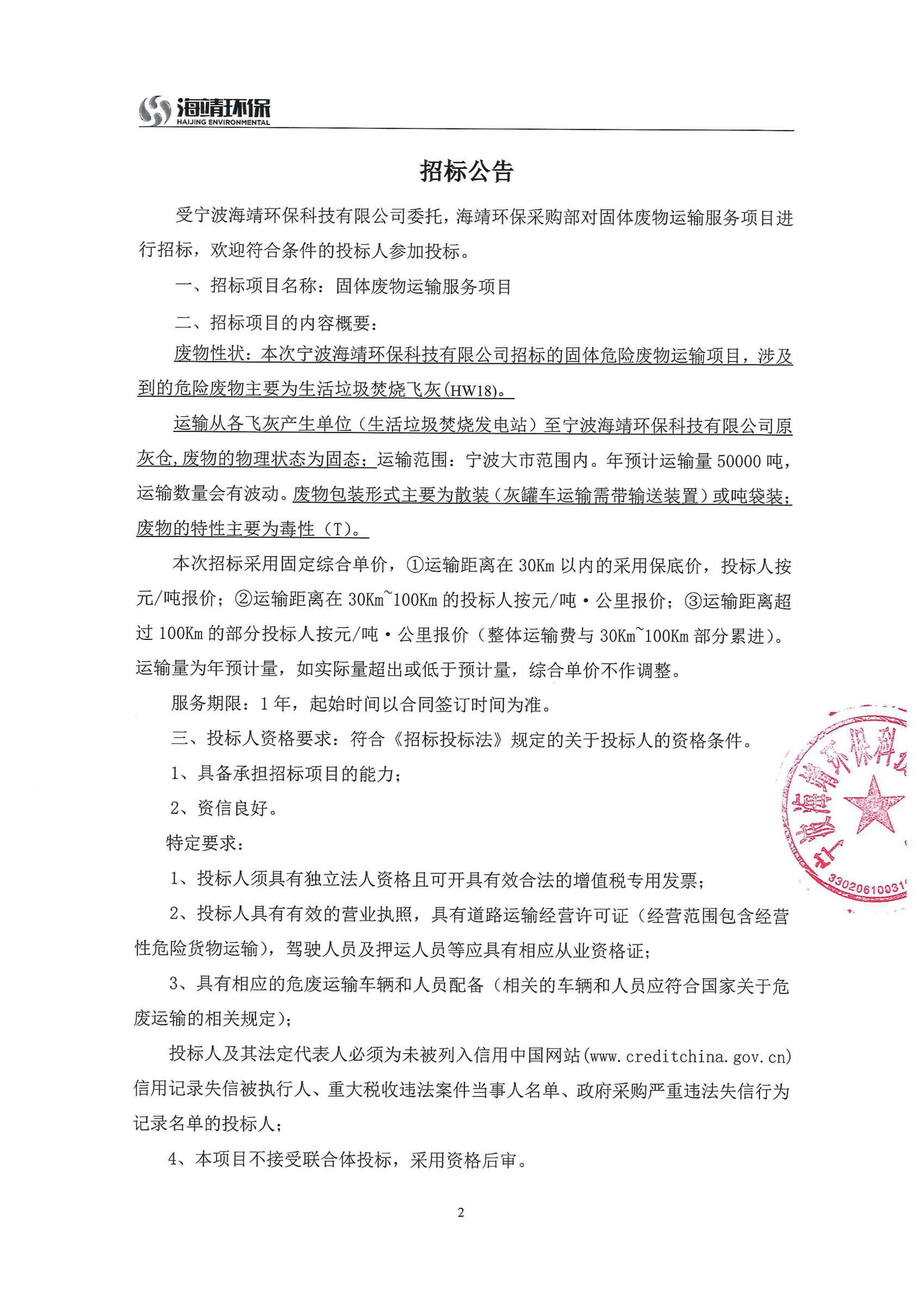 详细情况请下载查看附件: 飞灰清运服务招标公告.pdf